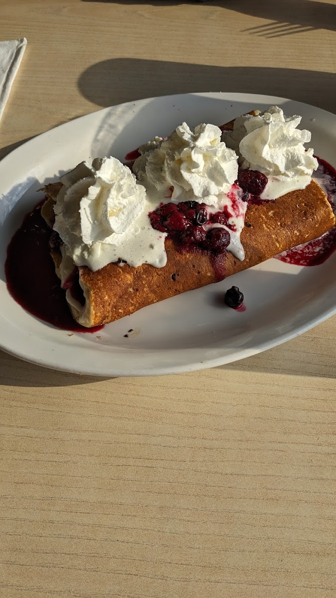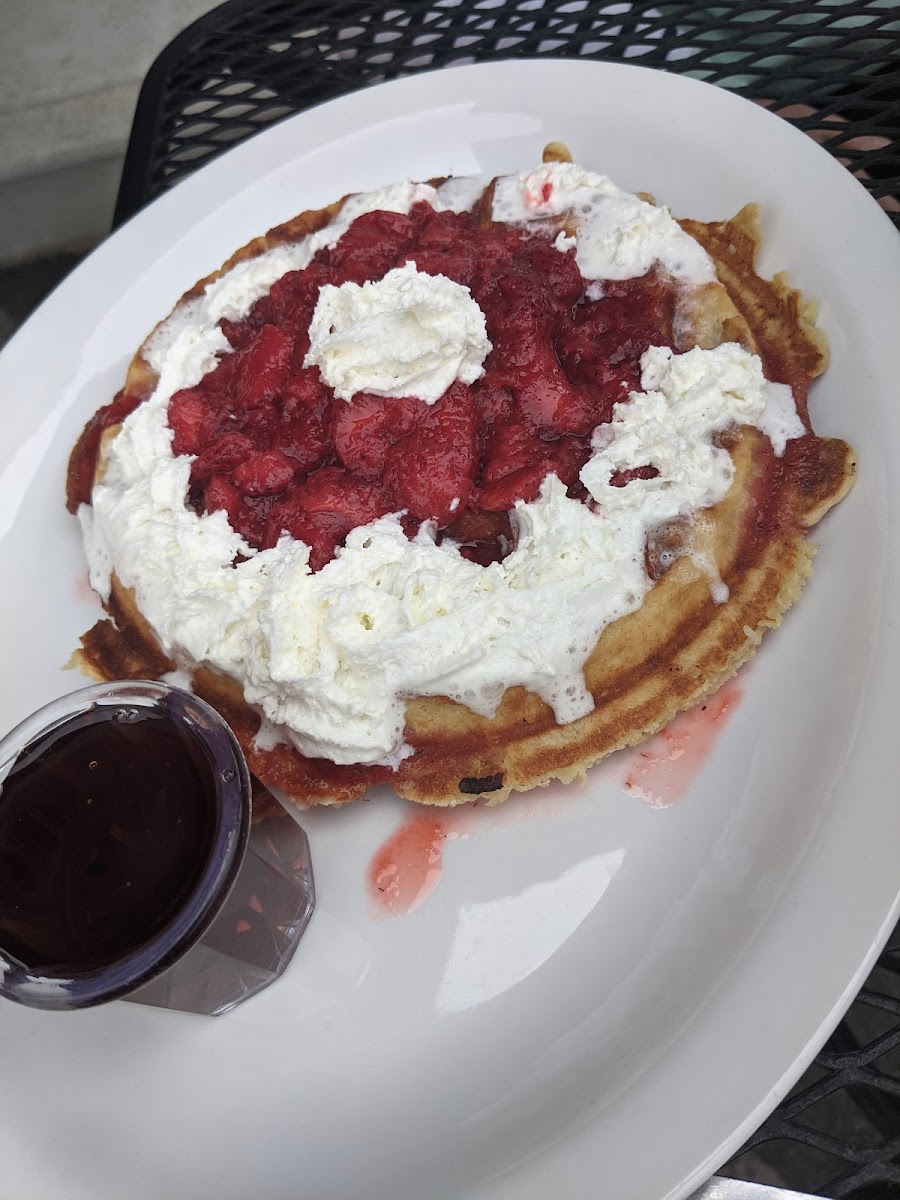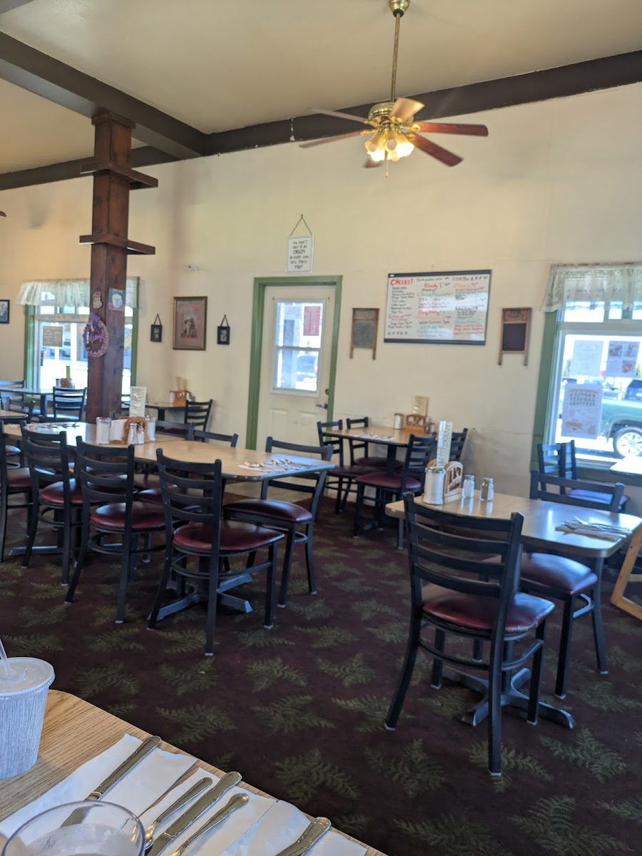 Nice small town cafe. We had Belgian waffle, which was not crispy. The Oatmeal was excellent: Bob's Organic Original Rolled Oats, brown sugar, cinnamon, raisins and chopped pecans! YUMMY