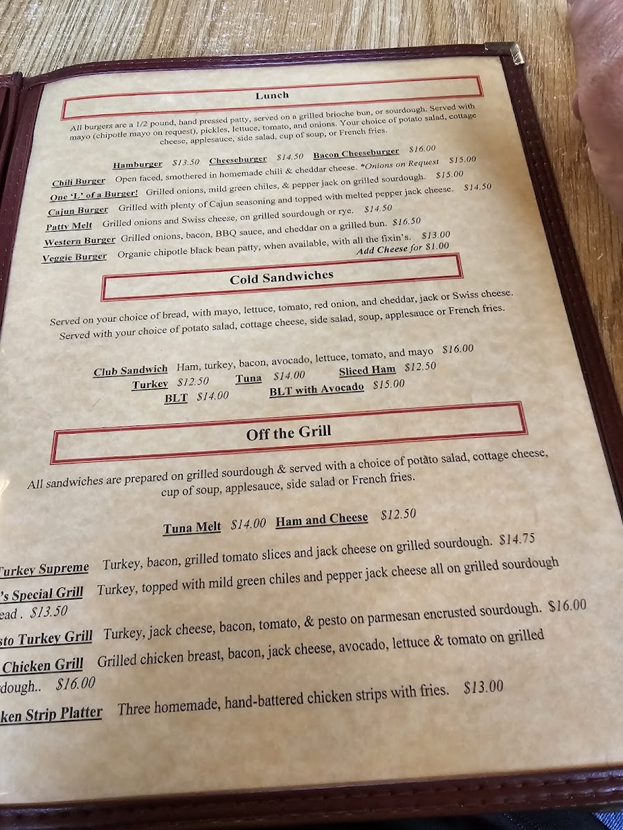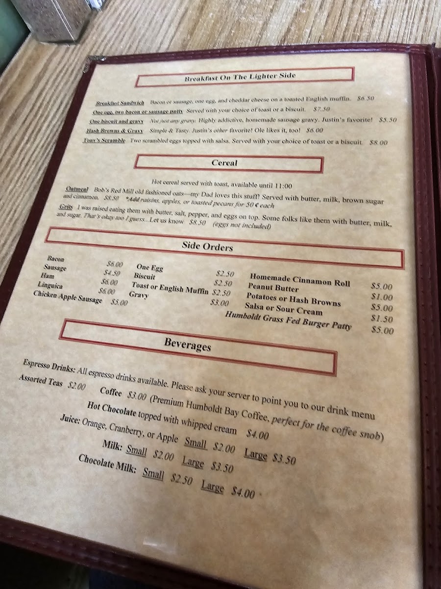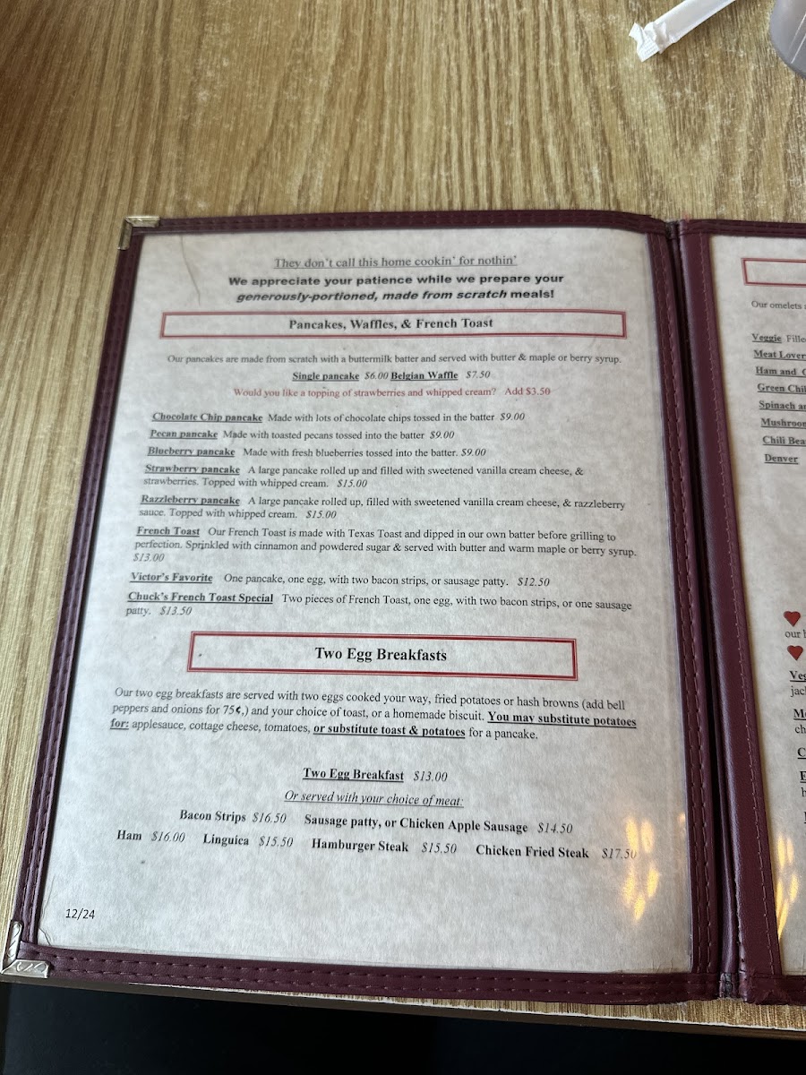 Start your morning with warm options like the cinnamon roll, Belgian waffle topped with fresh strawberries and whipped cream, or the richly flavored razzleberry pancake. For those looking for a savory choice, items like the patty melt, corned beef hash with eggs, and chili onions with cornbread provide a cozy, filling midday or brunch option.